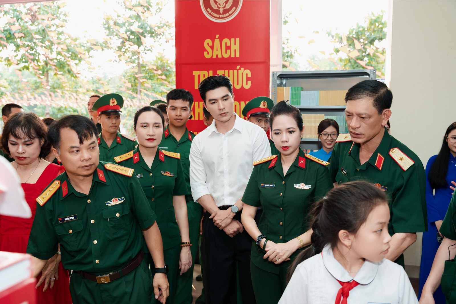 Chiều ngày 16/4, diễn viên Steven Nguyễn đã vinh dự đồng hành cùng Cục Chính trị Bộ Tổng Tham mưu Quân đội nhân dân Việt Nam tại lễ khai mạc “Thư viện lưu động - Hưởng ứng Ngày Sách và Văn hóa đọc Việt Nam lần thứ 5” diễn ra ở Lữ đoàn Tác chiến điện tử 98.